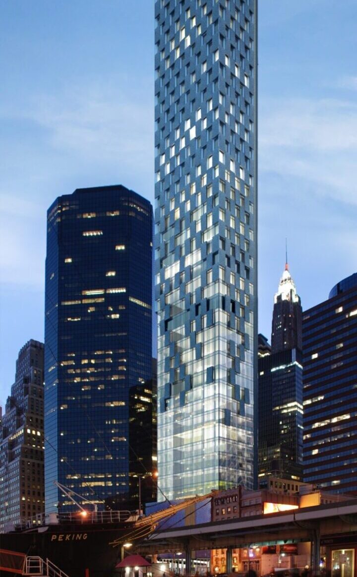 This mixed-use tower is a response to the often-neglected East River waterfront. Formed conceptually by lifting up a volume of water displaced by a proposed new pier, the tower’s mass is anchored equally to water and sky. The central challenge was to create a constructible solution on an extremely constrained site. The result is a combination of two overlapping structural systems. At the commercial base, an efficient “pinwheel” structure permits maximum transparency in the façade. Above, the solid envelope, a mixed composition of transparent and opaque surfaces informed by study of the river’s ever-changing surface, acts as a moment frame while improving both energy performance and residents’ privacy. This never built project won an AIA New York chapter Honor Award.