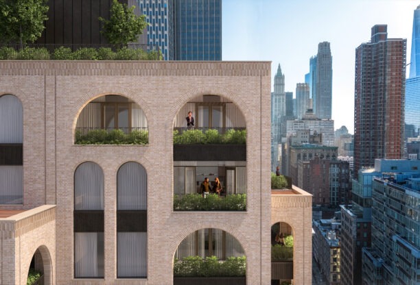 Our design offers an authentic, grounded response to its surroundings in the West End Collegiate Historic District, through a blend of detailed masonry and stepped terraces. Façade variations situate the building as a jewel setting for the Church and create a balanced, in-the-round design, where the rear façade becomes a new and inviting street front. 378 West End Avenue now unfolds and reveals itself from different angles, actively participating in the neighborhood and responding authentically to historically layered conditions. The warm brick color and detailing of the south façade harmonize with the Church’s intricate Flemish revival masonry, while the stepped massing recalls nearby gables. Metalwork draws inspiration from the Church’s rose window patterns.